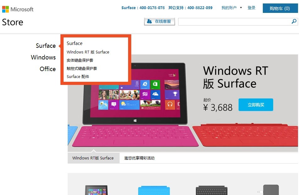 商城地址:http://devices.microsoftstore.com.cn/Surface